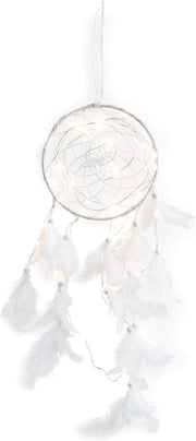 Contemporary dreamcatcher with feathers and painted wooden beads, plus 30 LED lights.