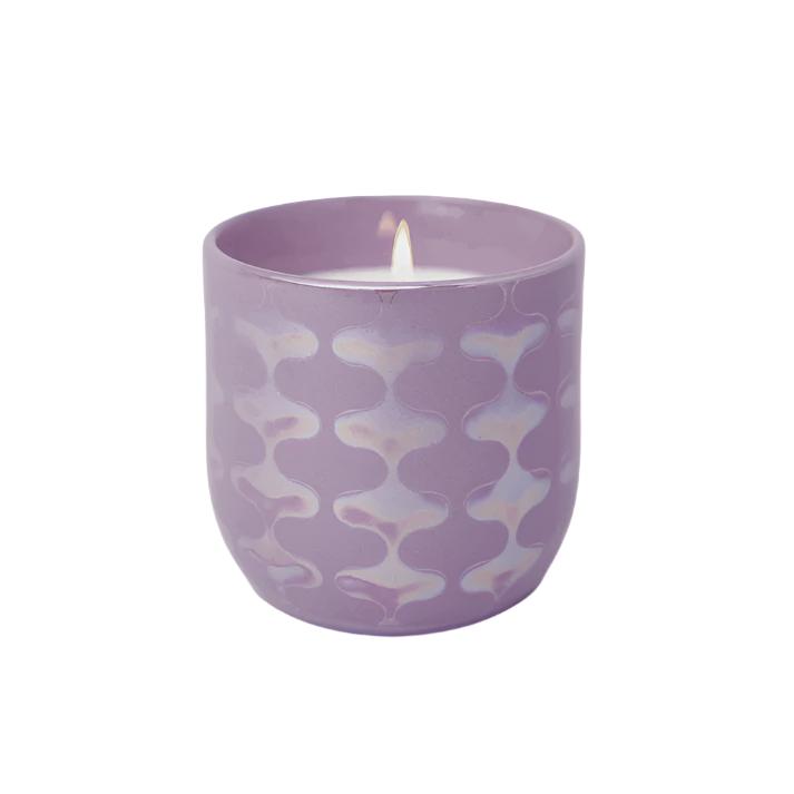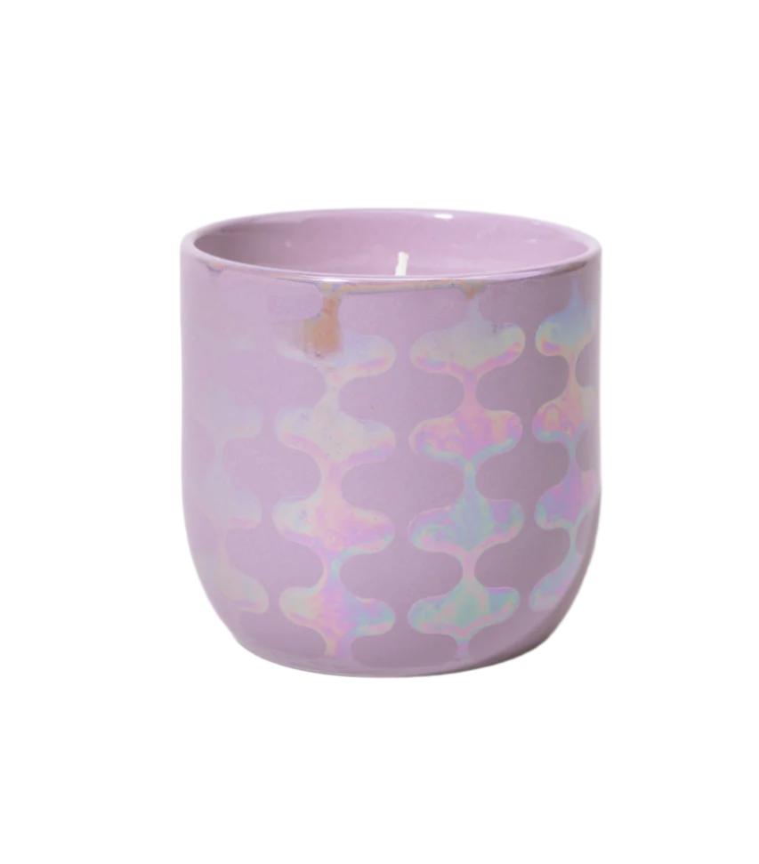 Strike a match and be transported to a state of luxury with the Lustre Candle - Lavender & Fern. Featuring a dazzling iridescent pattern in polished jewel tones, this sweet scented candle is designed to add opulence to all your spaces. After the wax runs out, reuse this food-safe ceramic vessel as a mug for your morning coffee or tea.
