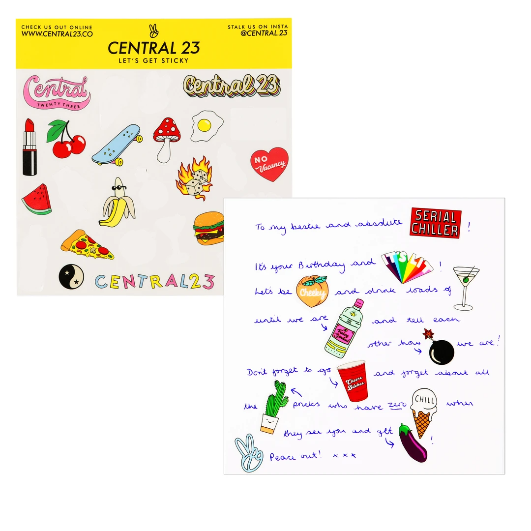 COMES WITH FUN STICKERS – to help you create a witty and cheeky message with an extra dose of Central 23 fun!