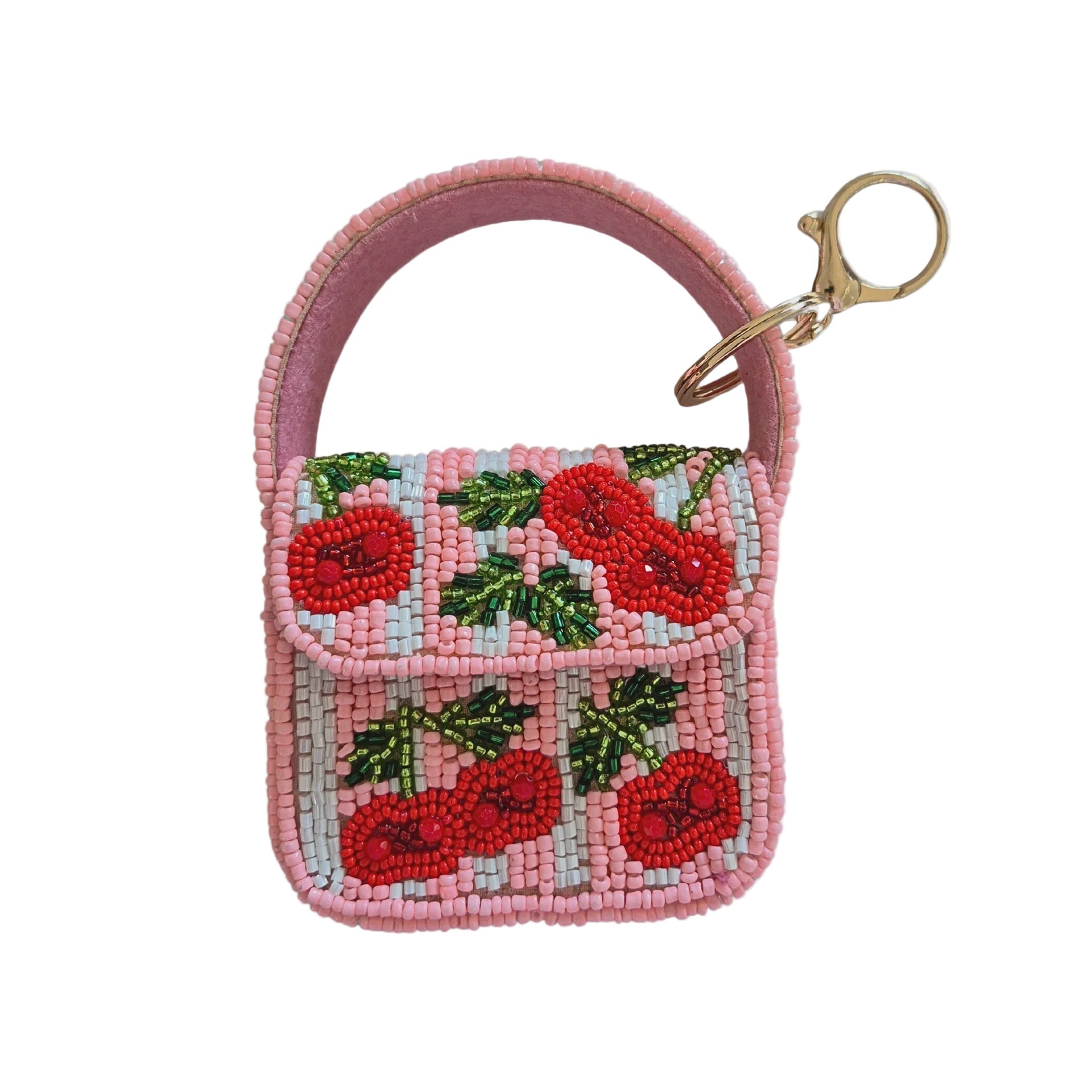 Mini Beaded Handbag Keychain - Pink Cherries