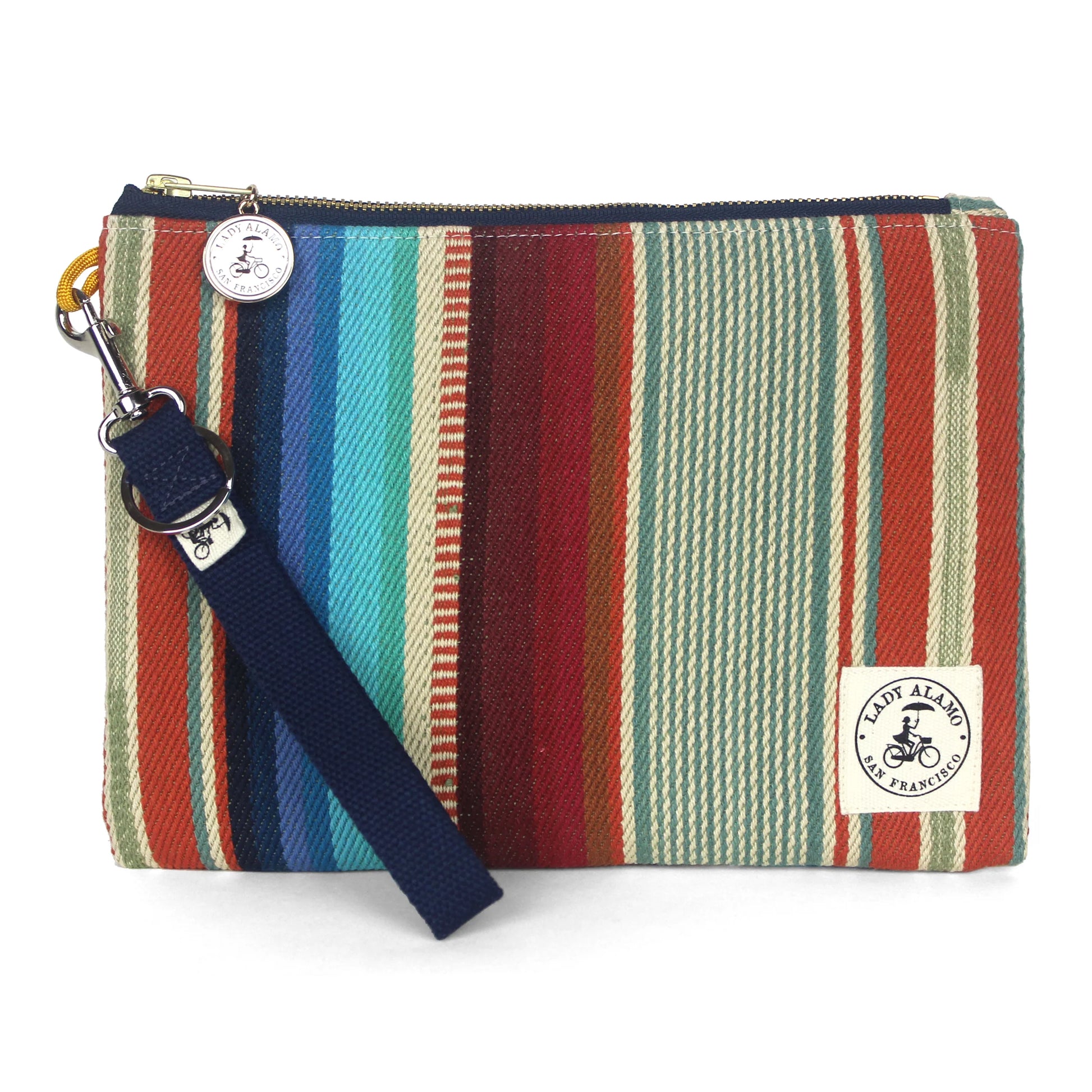 Large enough to pack all of your beauty supplies...or you can do like Lady Alamo and use it as a colorful Wristlet for out on the town. Detachable Key Ring included Padded with eco felt Water repellent lining Can be used as make up bag or a clutch Large enough for phone, wallet & keys.