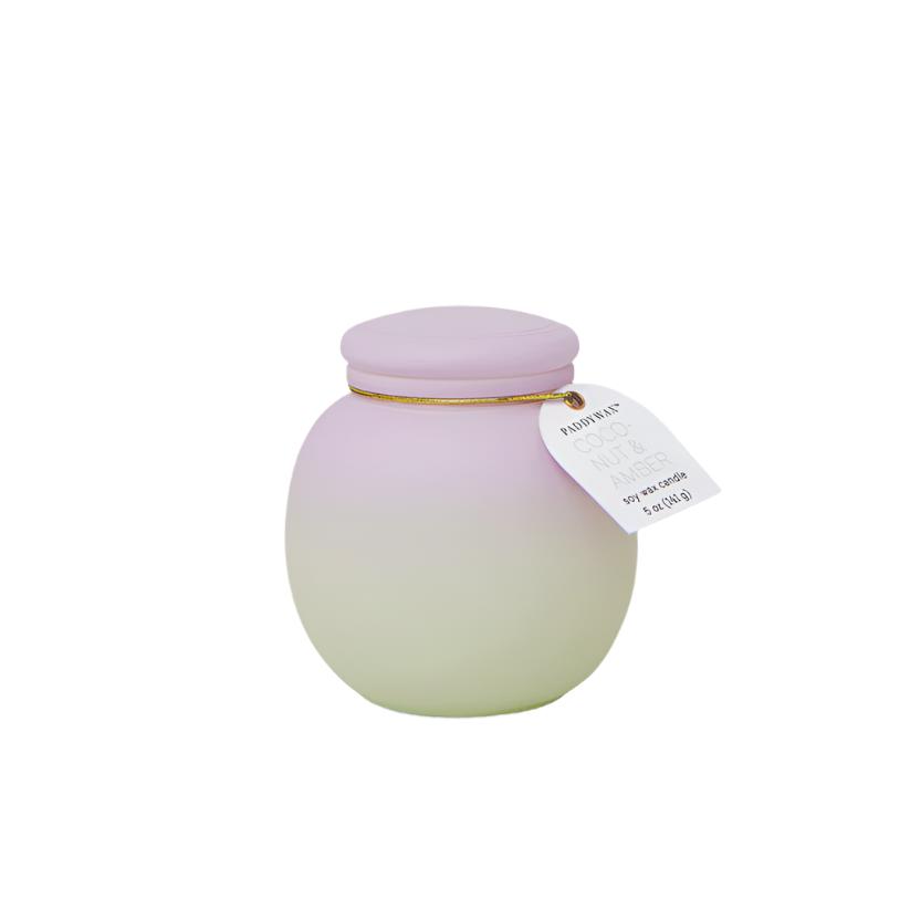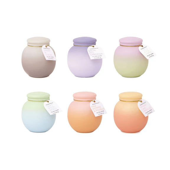 These deliciously scented 5 oz soy candles are the perfect pop of fragrance, in a pretty colored matte ombre glass jar that looks right at home in any interior.