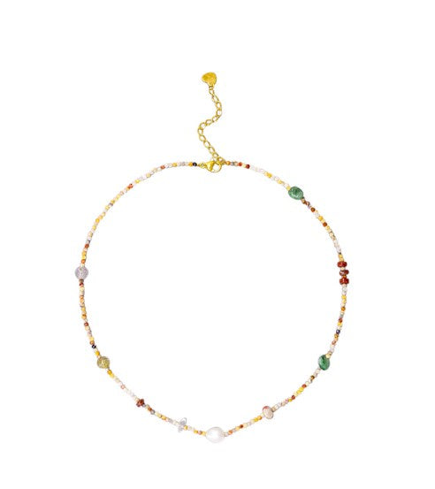 Cut Stone & Freshwater Pearl Necklace - Pebble