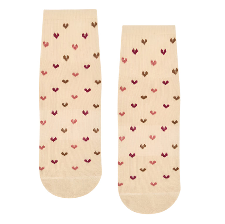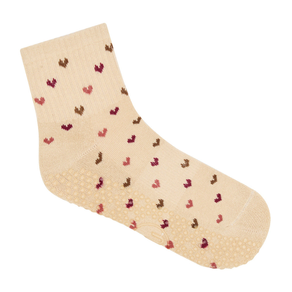 Quarter Crew Grip Socks - Hearts Aflutter Beige