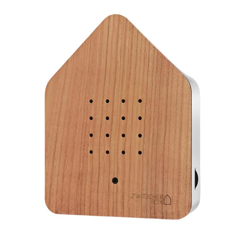 The cherry wood of this Zwitscherbox inspires with its delicate pattern. With elegant lines and warm tones, it adds exclusive flair to any room. Our cherry wood design fronts are carefully handcrafted by our Thuringian master woodworker. Each piece is unique.