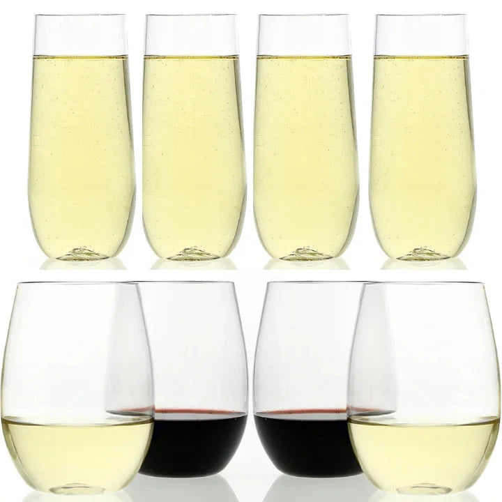 4 x Wine tumblers, 4 x Champagne flutes and and dust-proof bag included.