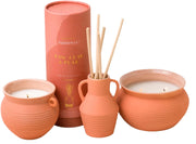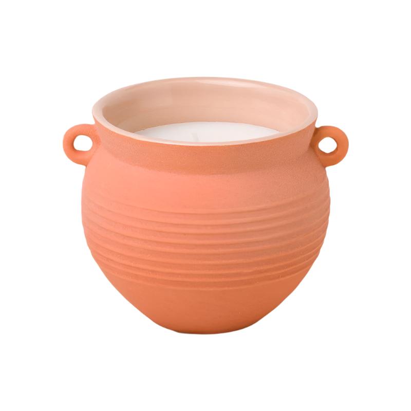 Escape to an island in the Aegean Sea with the Santorini collection. Influenced by timeless texture, this collection will transport you to a volcanic island of pure paradise. This 8.5 oz candle is hand-poured into a small pottery jug with handles and ribbed details that matches the style and scent of Santorini. After enjoying the Santorini-inspired scents, this unique vessel can be repurposed as a stylish storage vase.