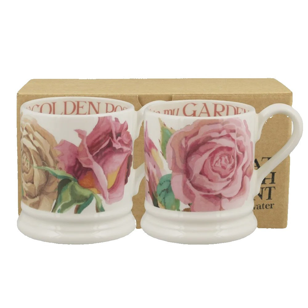A balcony, a small table with two chairs, the newspapers, and this Roses All My Life Set Of 2 1/2 Pint Mugs are all you need for a lazy Sunday morning together.
