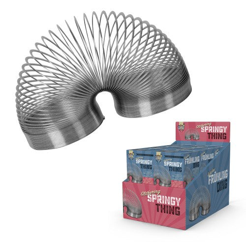 Superb metal version of this timeless 1930’s spring toy in fabulous packaging. Just like the original, this Metal Springy will walk down stairs or slopes. Stretches and then snaps back to shape. Endless addictive fiddling entertainment.