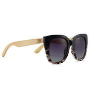 Oversized and dramatic, the Riviera sunglasses in classic black topped with flattering ivory tort are the perfect statement sunglasses to suit all face shapes and sizes. Fitted with black gradient polarised lenses and white maple wood arms, this style knows how to up your glamour game.