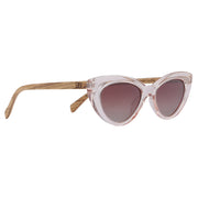 This is an iconic slim cat eye sunglass that never goes out of style. Favoured by style icons for generations, our Savannah is finished in a clear blush pink with walnut wood arms and fitted with gradient brown lenses.