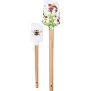 The set comes with two stylish spatulas, each featuring a lovely bee or flower design. Both spatulas are made from food-grade silicone, with sturdy natural timber handles.