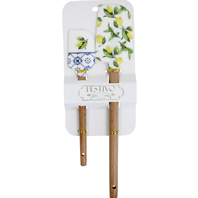 The set comes with two stylish spatulas, each with a citrus pattern. Both spatulas are made from food-grade silicone, with sturdy natural timber handles.