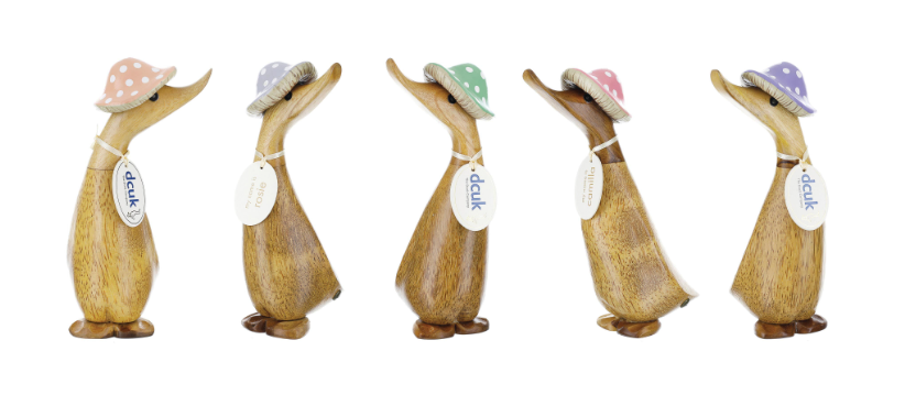 Inspired by the stories of Lewis Carroll and the drawings of Beatrix Potter, DCUK’s Toadstool Ducklings are individually carved from bamboo root and painted in pastels that look good enough to eat! We give all our characters a DCUK name tag.