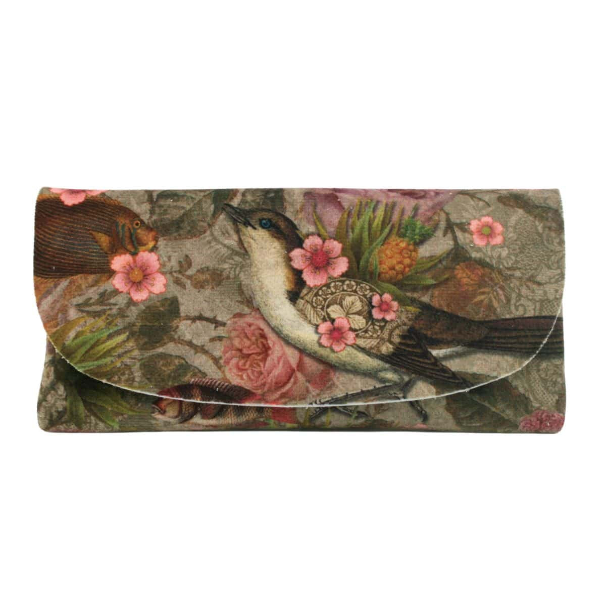 This velour glasses case is made in France and consists of a soft velour material on the exterior and is lined with microfibre cloth in the interior. A velcro tab is used for closure.