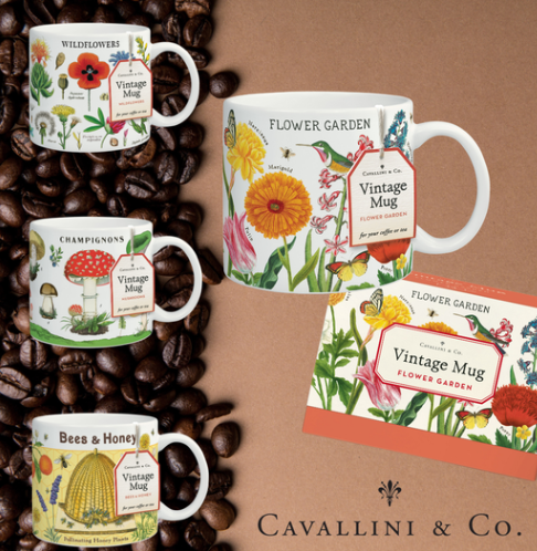 Beautiful Vintage Mugs from Cavallini come in a gorgeous gift box. Vintage imagery from the Cavallini archives - perfect for your coffee or tea!