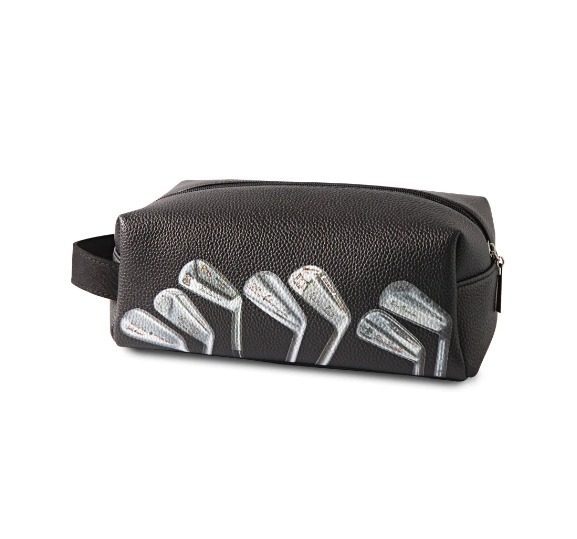 The design on this toilet bag features seven beautiful old signatured golf clubs from the Australian golfing scene of the '60's - '80's. Measuring a man sized 25cm x 12cm x 11cm the PVC leather bag is lightweight, highly durable & features 6 polyester internal pockets & a nylon zipper with metal puller.