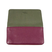 She has an olive front, open her up and she has a beautiful surprise tangerine inside. She has a vibrant magenta backside and a hidden emerald inside triple card holder.