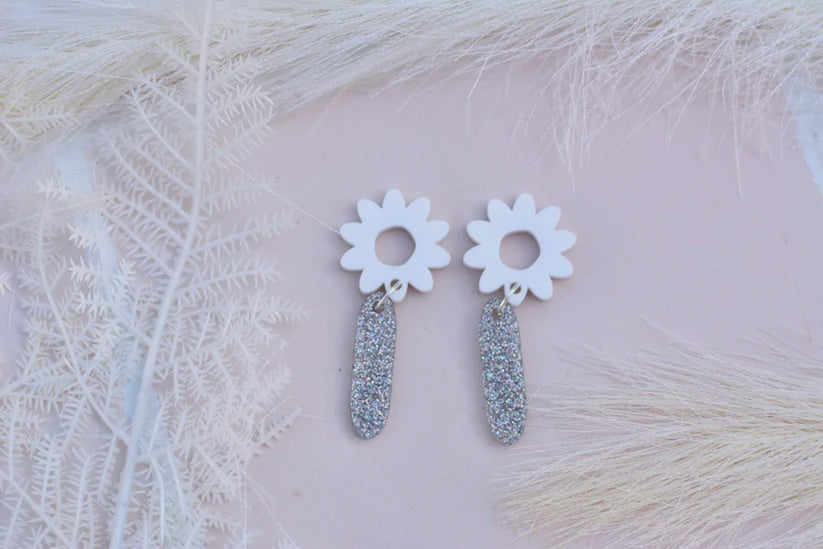A daisy shaped acrylic starter, measuring approx 23mm with a glitter stem.