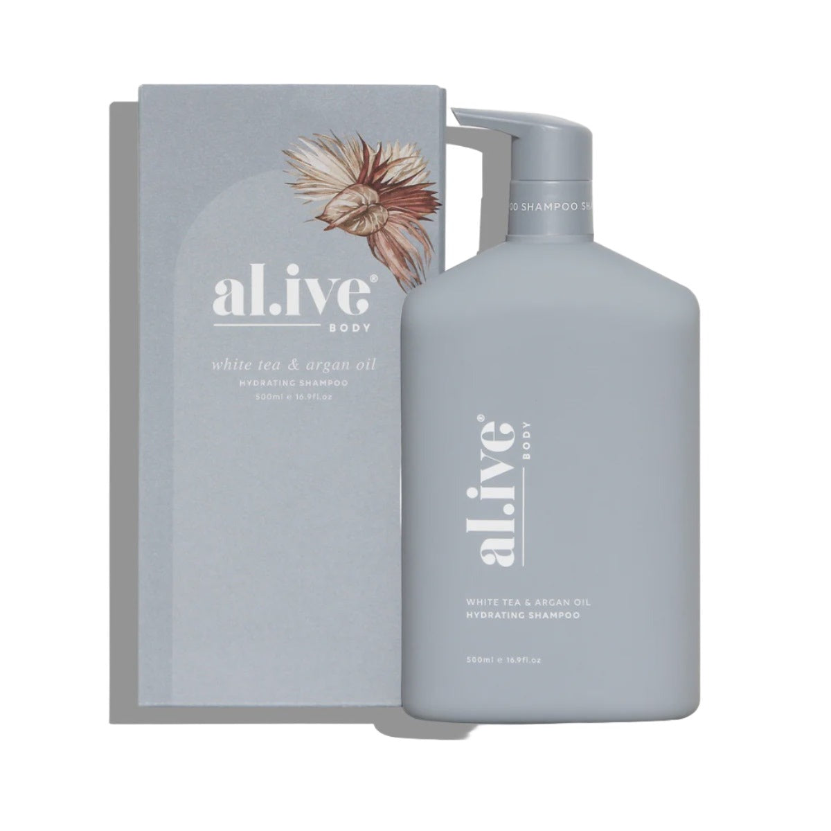 The al.ive body White Tea & Argan Oil Hydrating Shampoo contains a luxurious blend of naturally derived ingredients, fortified with essential oils and native botanical extracts.