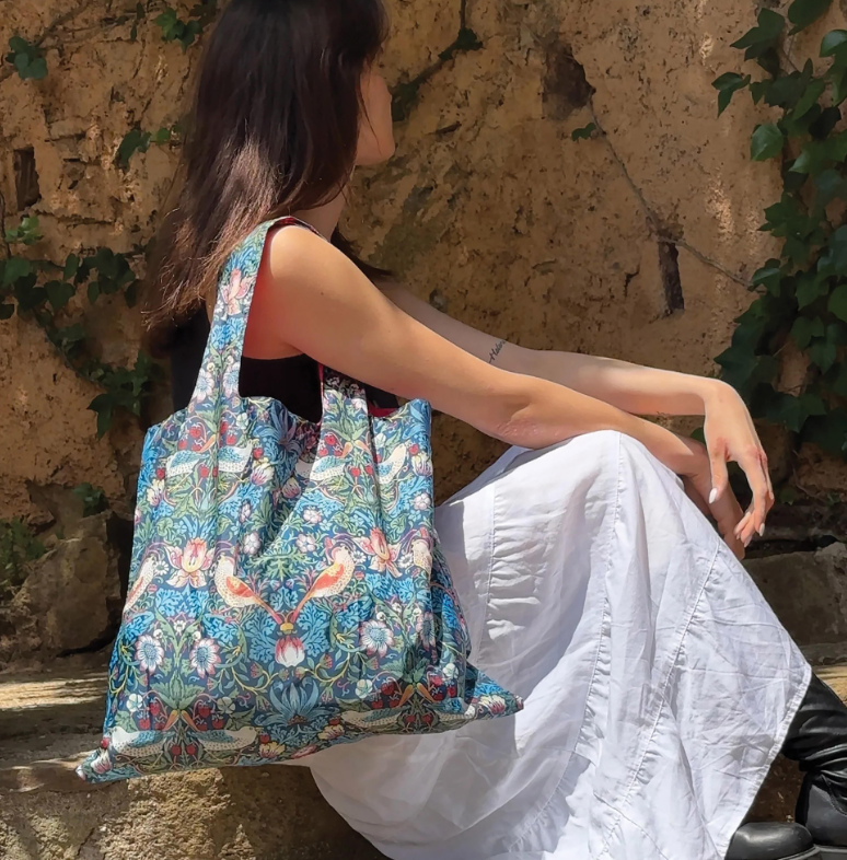 Let your imagination away with Strawberry Thief by William Morris recycled tote bag.