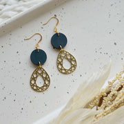 Made from hand painted basswood, raw brass, and hypoallergenic gold plated brass ear wires. Designed, engraved, and assembled in Selah, Washington, USA.