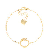 Fine gold-plated steel link bracelet with a round pendant featuring a zirconium and a star.